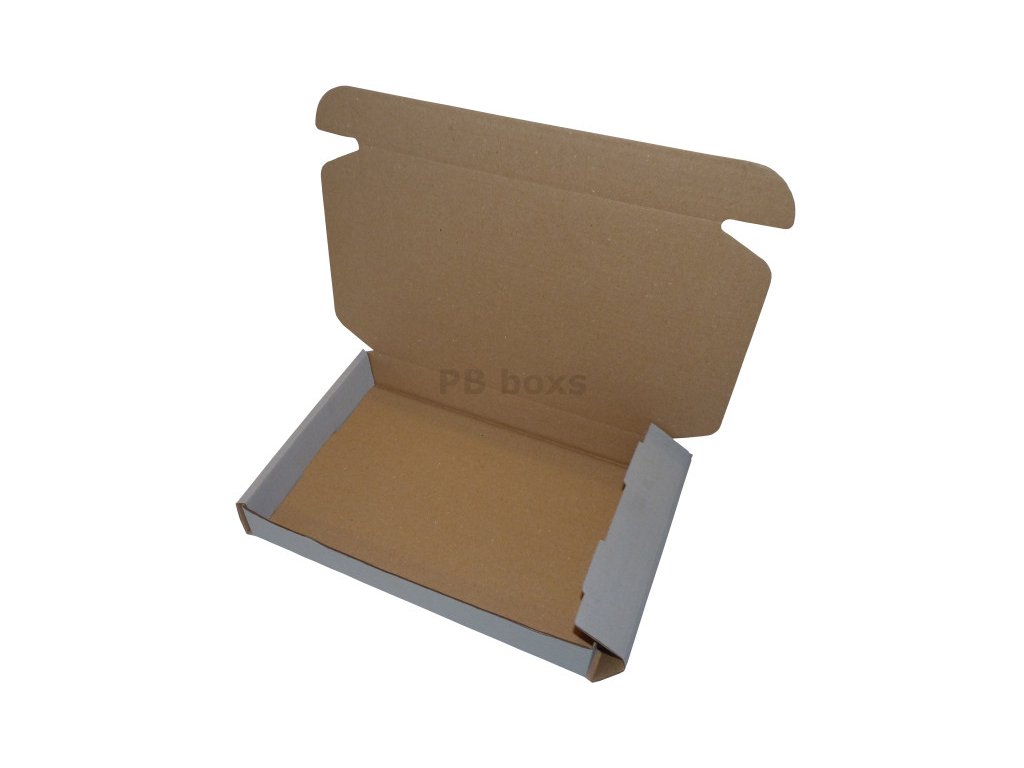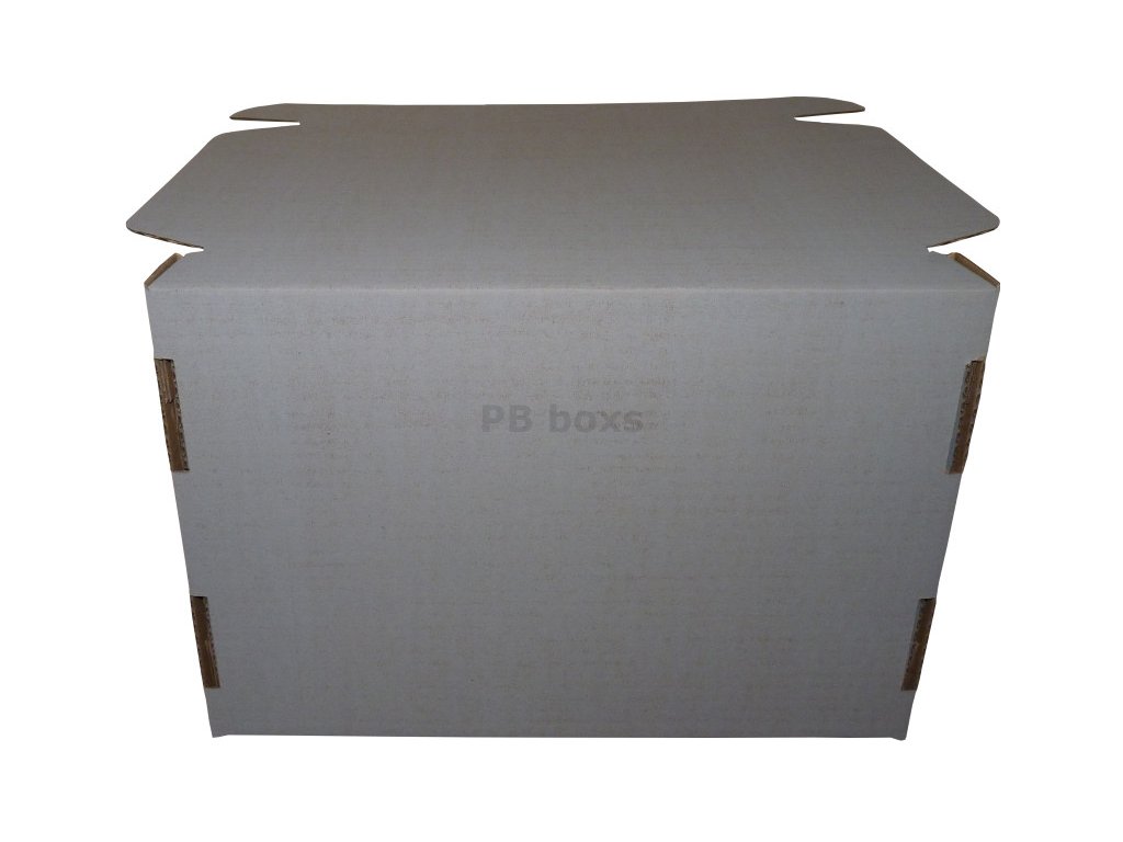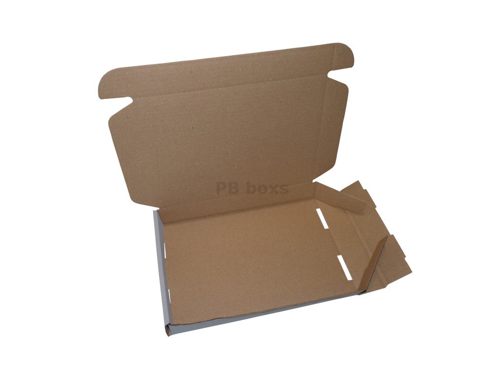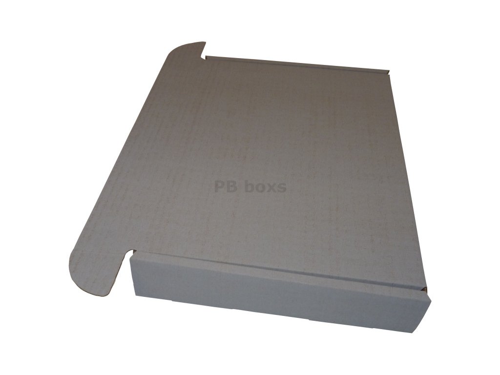 Šedá skládaná krabice o vnitřním rozměru 305x215x45 mm z třívrstvé lepenky. Snadné složení, rozměr A4, dodáno v plochém stavu.